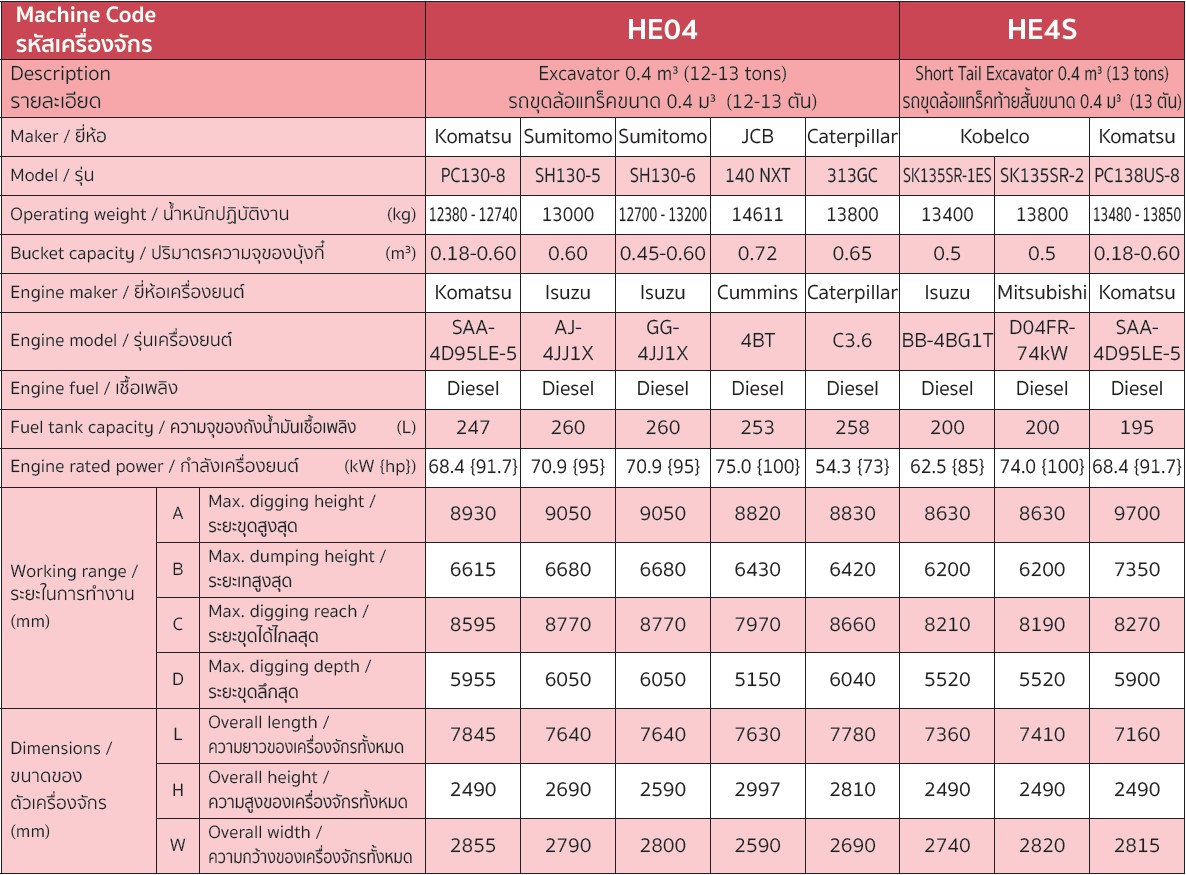 รถขุดล้อแทร็คท้ายสั้นขนาด 0.4 ม³ (13 ตัน)