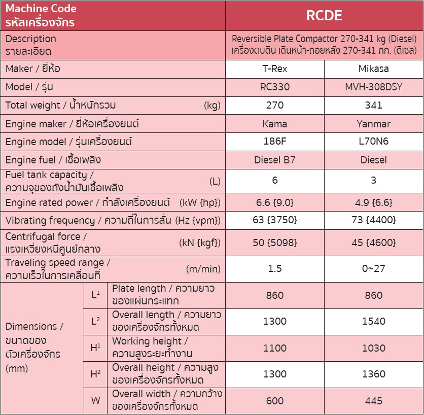 เครื่องตบดิน เดินหน้า-ถอยหลัง 270-341 กก. (ดีเซล)