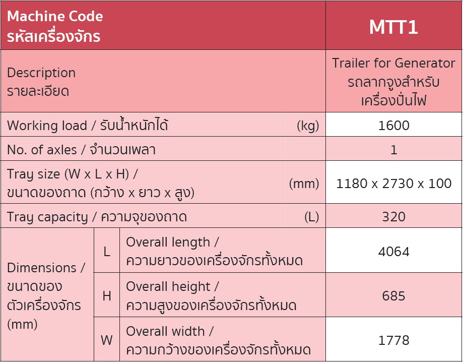 รถลากจูููงสำาหรับ เครื่องปั่นไฟ