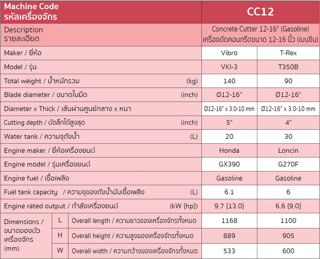 เครื่องตัดคอนกรีตขนาด 12 นิ้ว (เบนซิน) ให้เช่าพร้อมใบเพชรตัดคอนกรีต