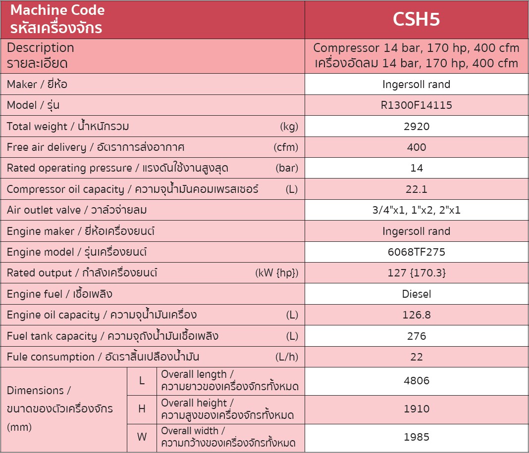 เครื่องอัดลม 7 bar, 35 hp, 125 cfm (ดีเซล)