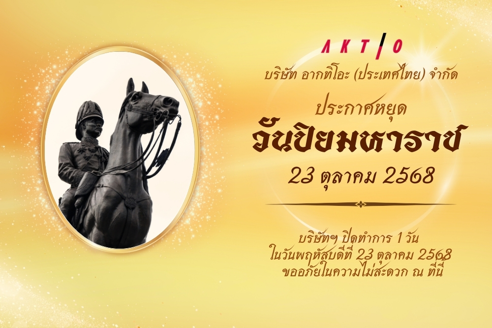 บริษัท อากทิโอะ (ประเทศไทย) จำกัด จะปิดทำการใน วันพฤหัสบดีที่ 23 ตุลาคม พ.ศ. 2568 เพื่อน้อมรำลึกในพระมหากรุณาธิคุณ